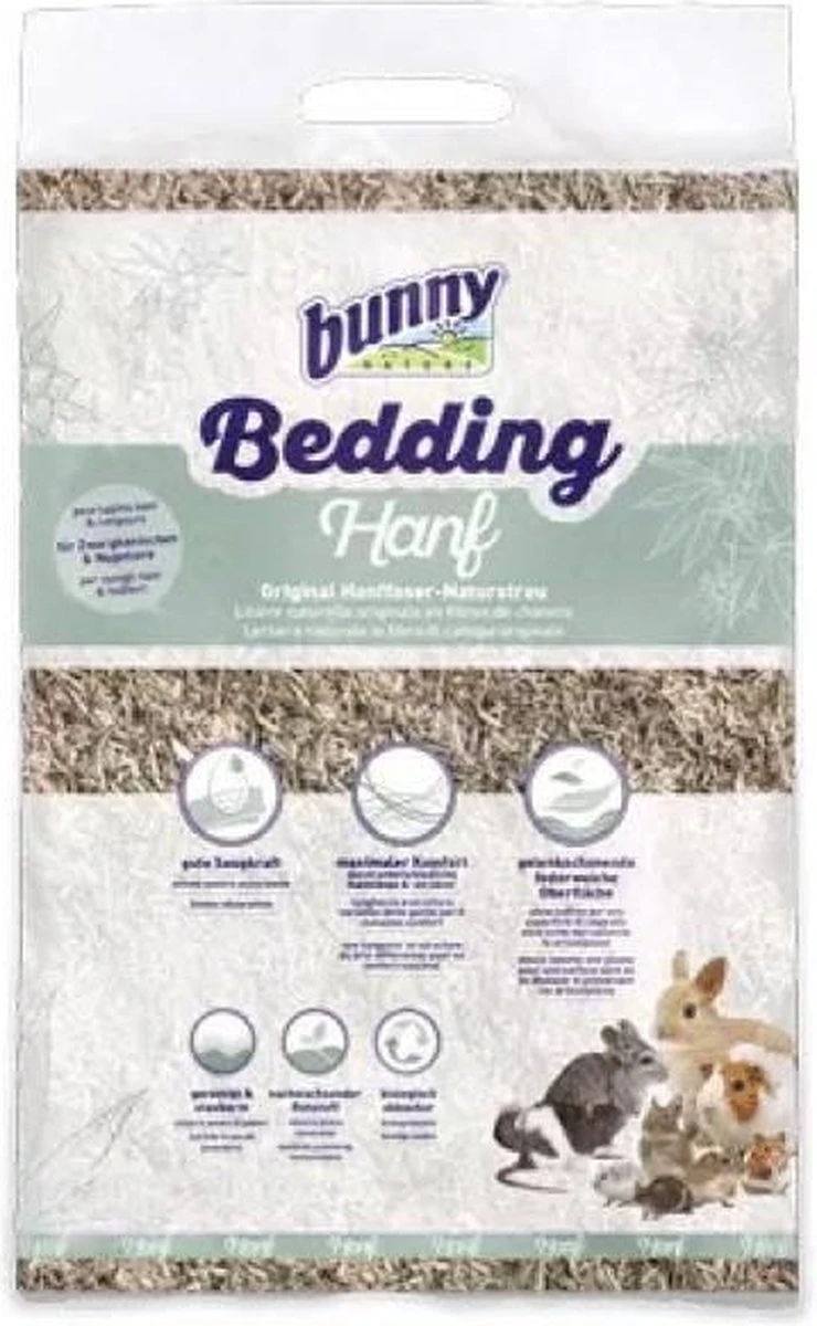 Bunny Nature Bunnybedding Hanf Hennepvezel 35 ltrBunny Nature Bunnybedding Hanf Hennepvezel 35 liter is een natuurlijke, veerkrachtige bodembedekking voor konijnen en knaagdieren, zeer zacht en absorberend. Zo zorgt je voor een prettige ondergrond in de kooi van jouw konijn, cavia, hamster of andere kleine huisdier, ook als deze bijzonder gevoelig is of last heeft van de gewrichten. Hanf Hennep is namelijk bijzonder zacht en comfortabel door de verschillende strolengtes en structuren. Het hennepvezel is daarnaast stofarm, wat luchtwegproblemen helpt te voorkomen, en goed gereinigd. Hennep is een hernieuwbare, biologisch afbreekbare grondstof die dus ook nog eens beter is voor het milieu! – Bodembedekking voor konijnen, cavia’s, hamsters en andere kleine knaagdieren- Zeer zacht en verend van structuur, zacht voor de poten en gewrichten- Stofarm en gereinigd- Biologisch afbreekbaarInhoud: 35 liter