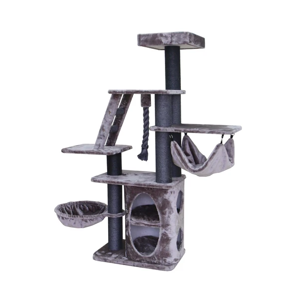 De Krabpaal Classy van Adori is een grote krabpaal voor je kat (of katten) met een afmeting van 65 x 45 x 175 cm. Deze krabpaal bestaat uit meerdere krab-, klim-, speel- en slaapplekken zoals een holletje, speeltouw en hangmandjes. Door de vele mogelijkheden is deze krabpaal zeer geschikt voor een huishouden met meerdere (grote) katten. De Classy is ook hoog waardoor je kat goed zijn omgeving in de gaten kan houden vanaf het bovenste plateau. De verschillende verdiepingen en het hangende touw zorgen voor extra speelplezier. De krabpaal is verkrijgbaar in de kleuren cappuccino en grijs.