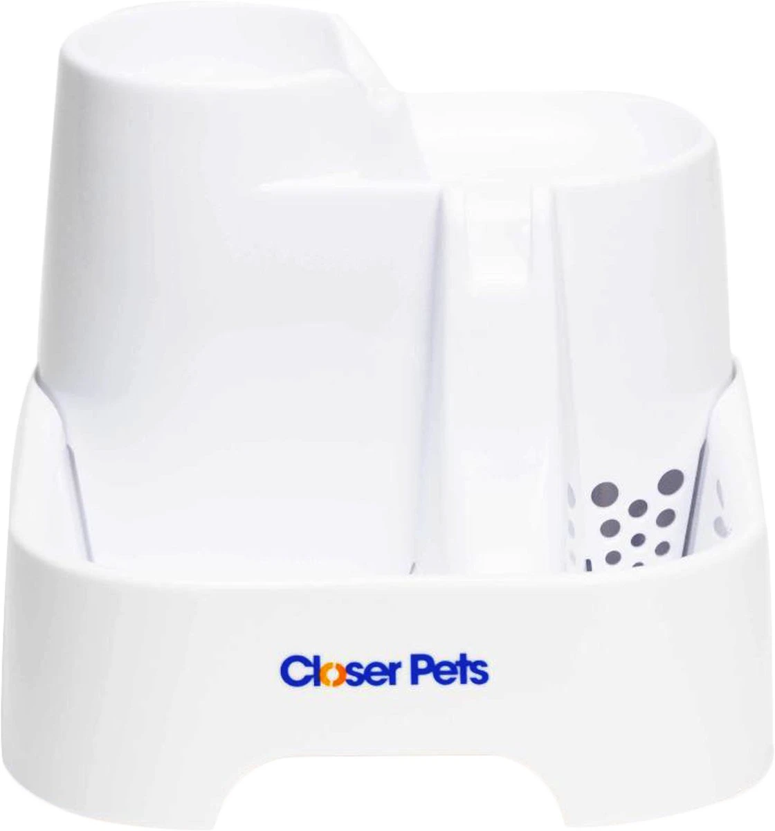 De Closer Pets Drinkfontein 335E, is een uitstekende manier om jouw kat of katten te voorzien in hun drinkbehoefte. Om te zorgen voor een goede gezondheid van jouw kat, moet jouw kat namelijk voldoende water drinken. Deze fontein is zeer makkelijk in gebruik. Het enige wat je hoeft te doen is de adapter aan te sluiten en de fontein te vullen met water. Deze drinkfontein heeft verschillende hoogtes, zodat je zelf kan bepalen wat de fijnste hoogte is voor jouw kat om water te drinken. Inclusief nagenoeg geruisloze 12 volt pomp en koolstoffilter. Inhoud: 2L