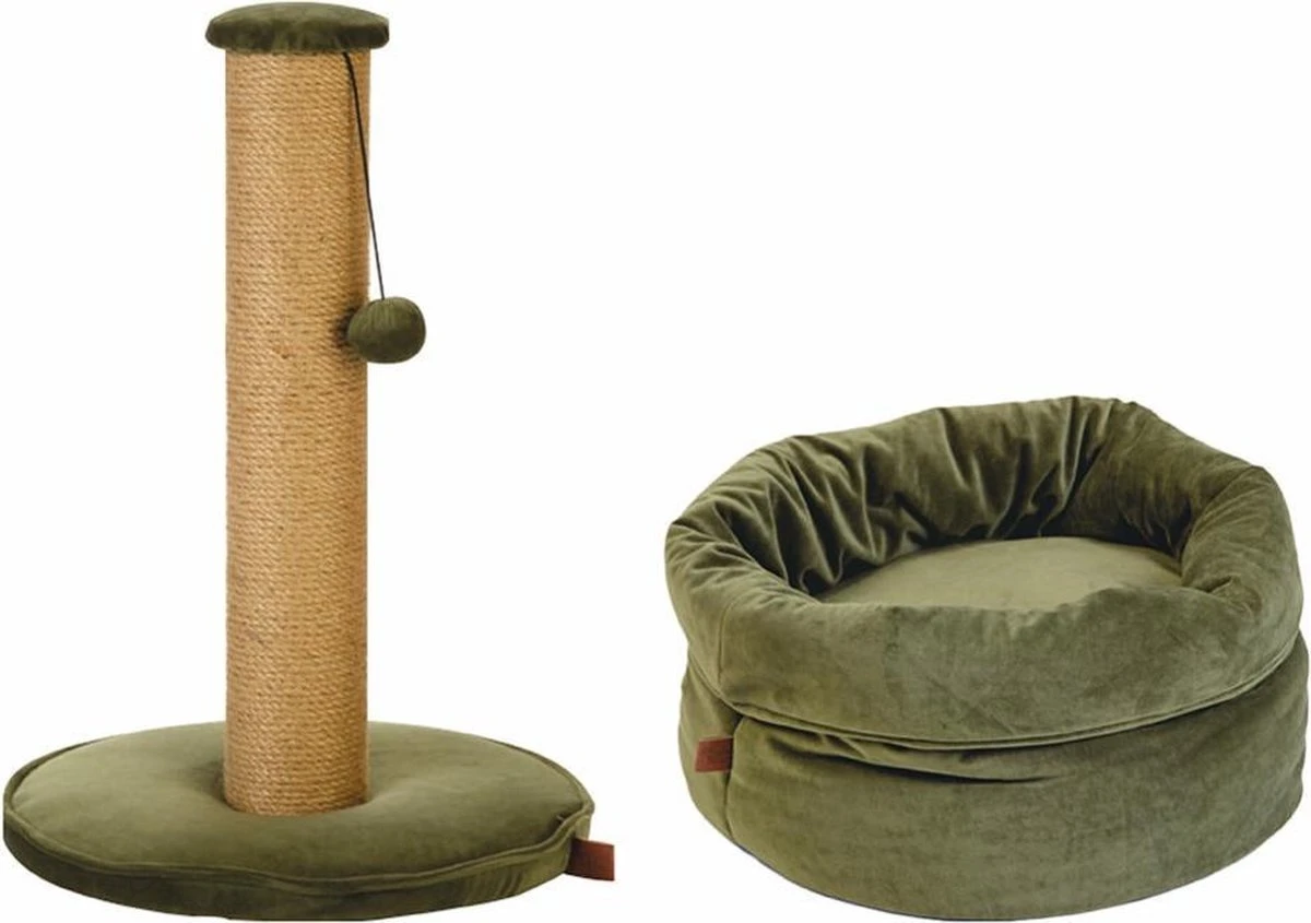 De Designed by Lotte Yenna krabpaal gaat mee met de laatste velvet trend. De krabpaal is voorzien van een sisal krabgedeelte, zodat jouw kat lekker zijn gang kan gaan met krabben. Het gedeelte bovenop de paal en de onderplaat, zijn voorzien van een velvet stof. Dit geeft de krabpaal een luxe uitstraling, waardoor het een echte eyecather wordt in huis. Inclusief een speelbolletje voor extra speelplezier.