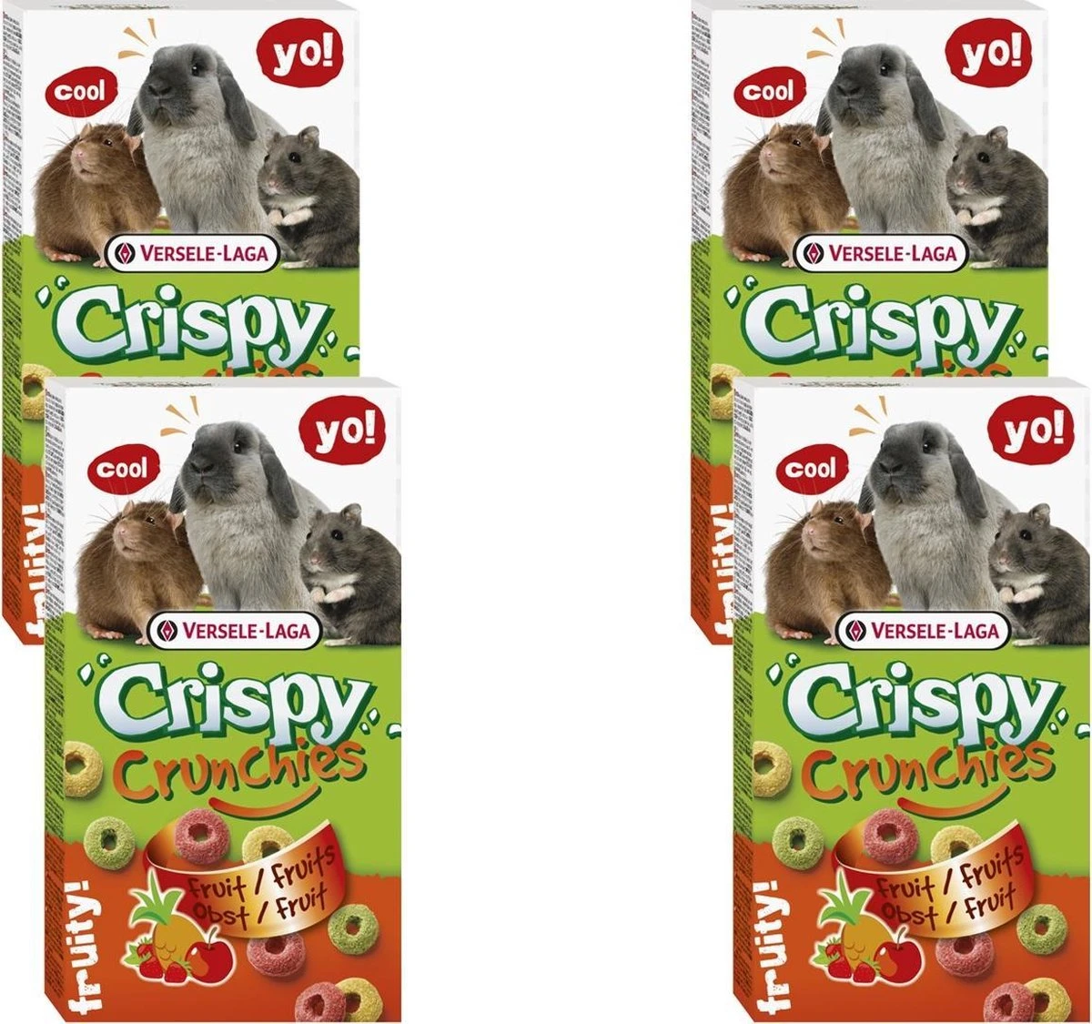 Versele-Laga Crispy Crunchies fruit is een lekkere snack voor je konijn en/of knaagdier. Het geeft tevens een aanvulling op het voer. Deze ringetjes zijn luchtig en dragen bij aan de conditie van je knaagdier. Ook stimuleert het de vitaliteit. Met de smaken van appel, aardbei en ananas kan je konijn en/of knaagdier lekker genieten.br /-Luchtige ringetjesbr /-Knapperig vers door versheidsverpakkingbr /-Tropische smaken